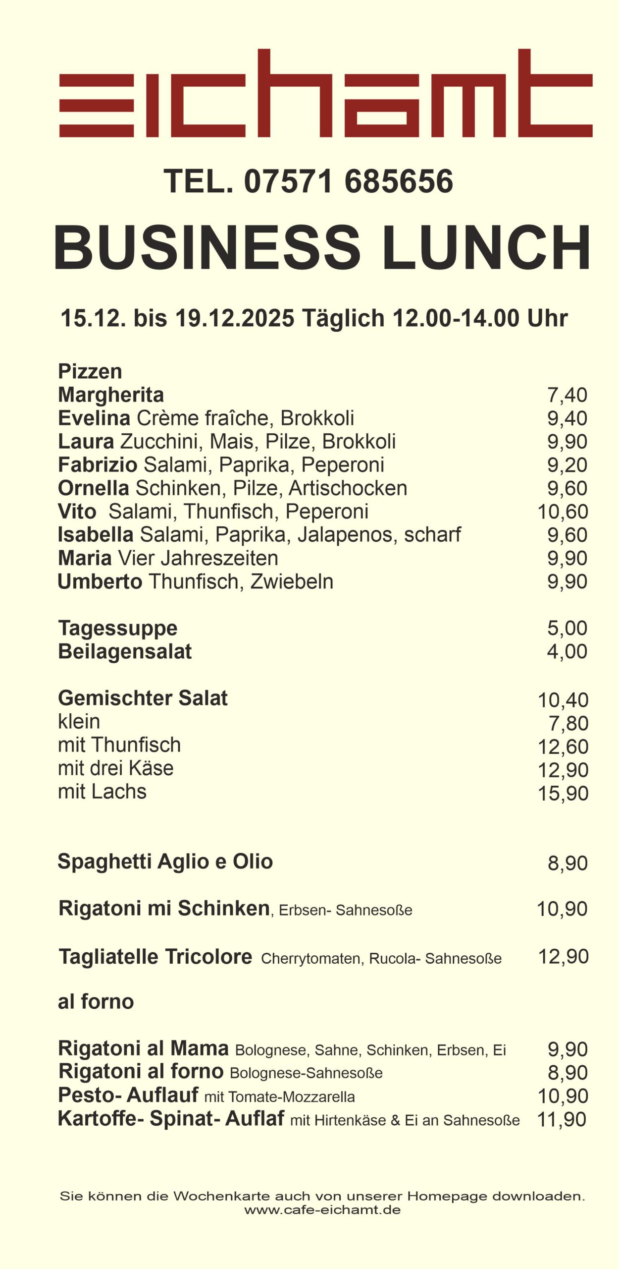 Business Lunch Mittagsmenü MO – FR 12:00 – 14:00 Uhr Alle Speisen & Kaffee auch zum Mitnehmen. zur Speisekarte zur Getränkekarte